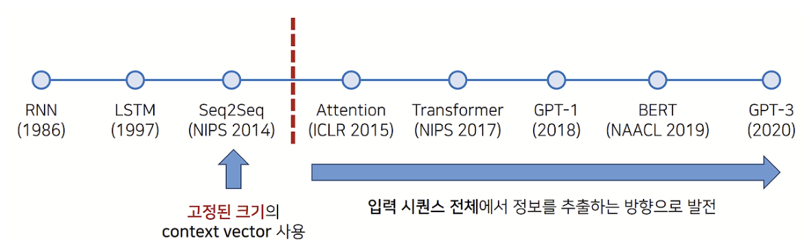 이를 보완하기 위해 Sequence-to-Sequence (Seq2Seq) 모델이 등장했고, 인코더와 디코더 구조를 도입했다. 하지만 여전히 RNN에 기반해 있어 처리 속도와 성능에 제약이 있었다.