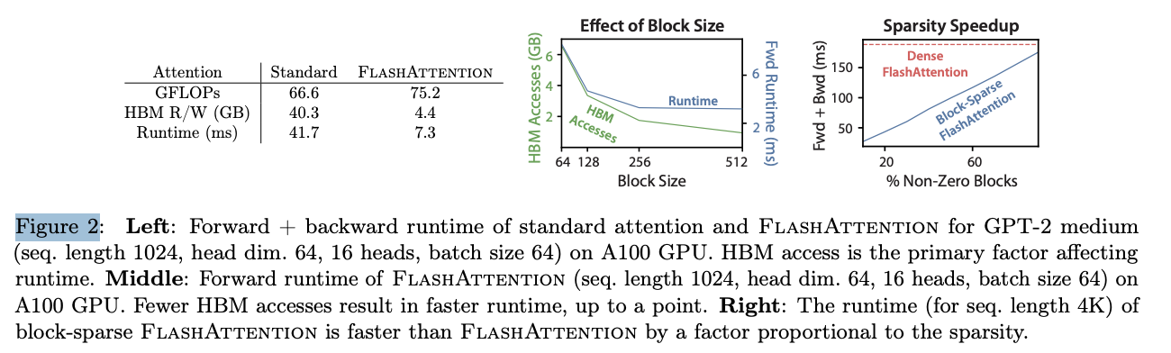 실험 결과 FlashAttention은 다음과 같은 효과를 보였다.