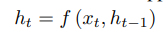 - 일반적으로 RNN을 사용하여, 각 시점 t에서 은닉 상태 ht 를 업데이트함: