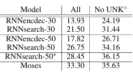 - 길이 50 이하 문장을 사용한 모델 (RNNencdec-50, RNNsearch-50)